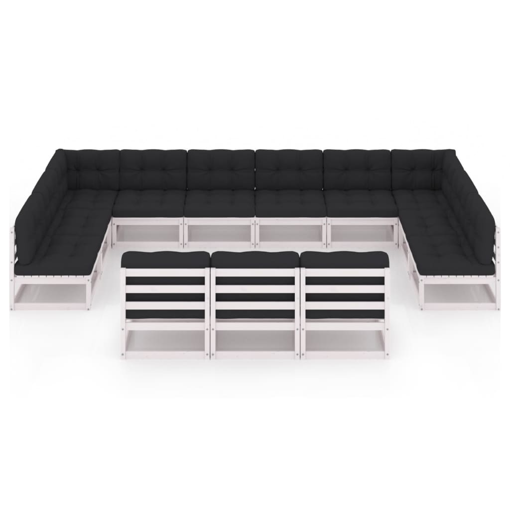 13-tlg. Garten-Lounge-Set mit Kissen Weiß Massivholz Kiefer