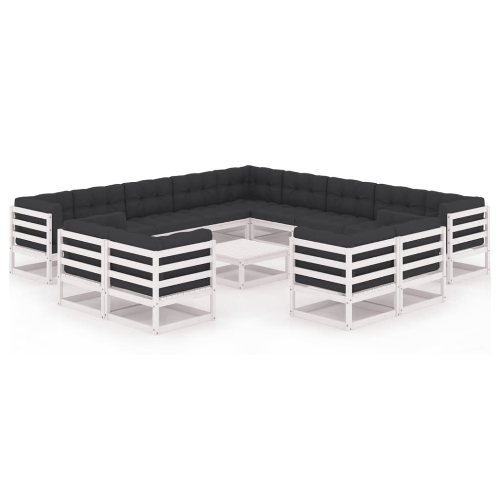 14-tlg. Garten-Lounge-Set mit Kissen Weiß Massivholz Kiefer