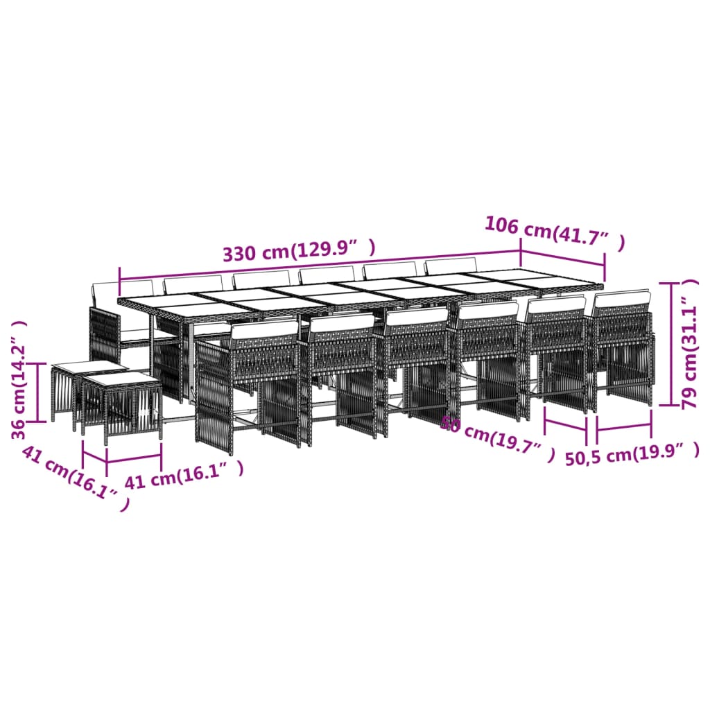 17-tlg. Garten-Essgruppe mit Kissen Schwarz Poly Rattan