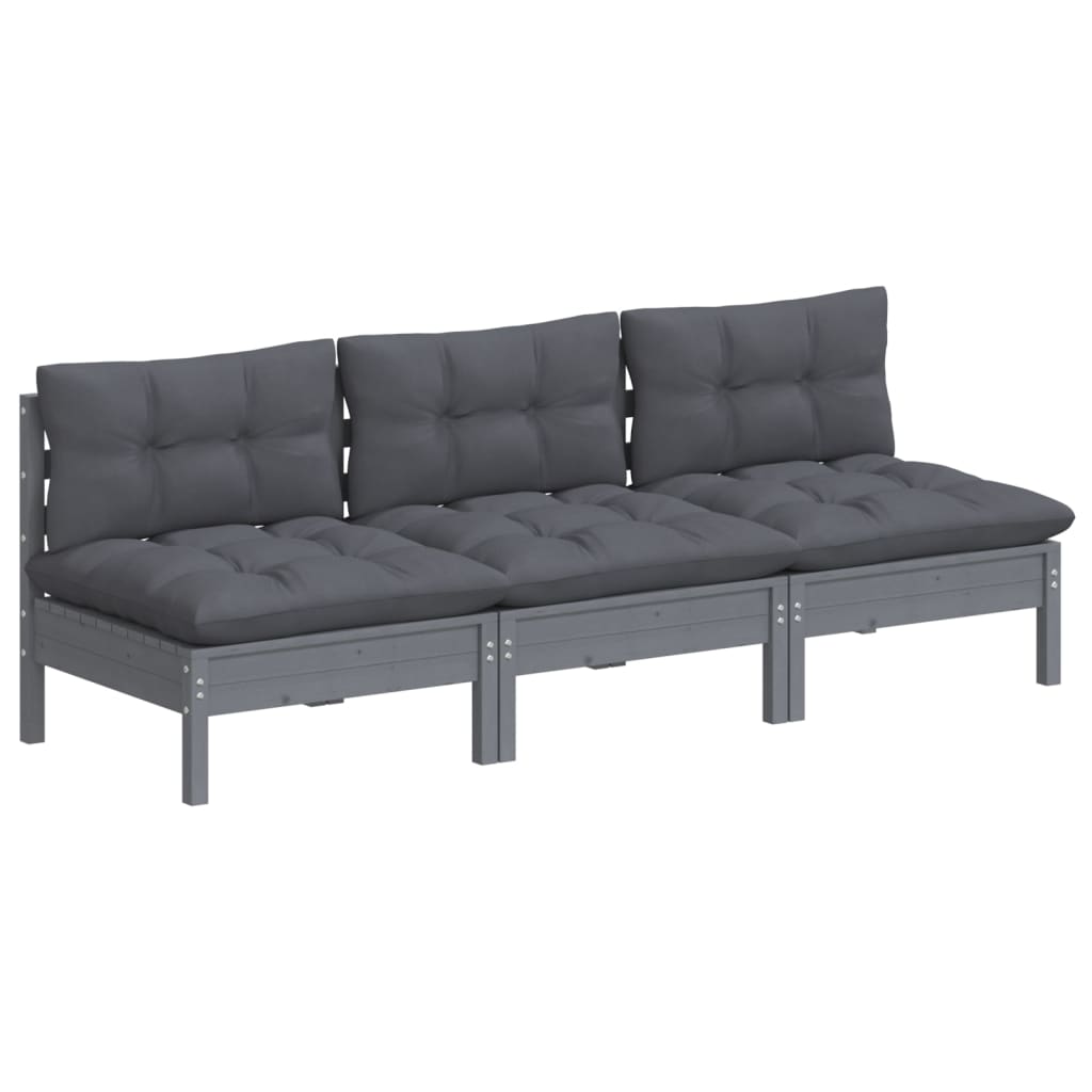 3-Sitzer-Gartensofa mit Anthrazit Kissen Massivholz Kiefer