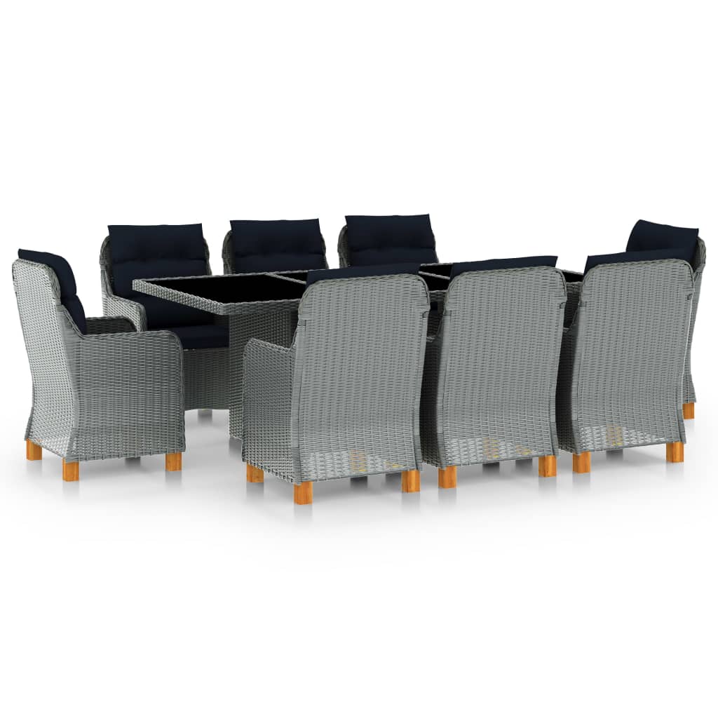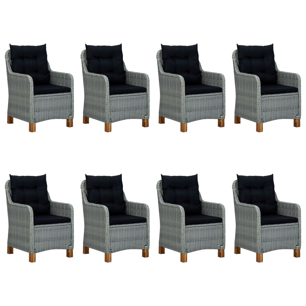 9-tlg. Garten-Essgruppe mit Auflagen Poly Rattan Hellgrau