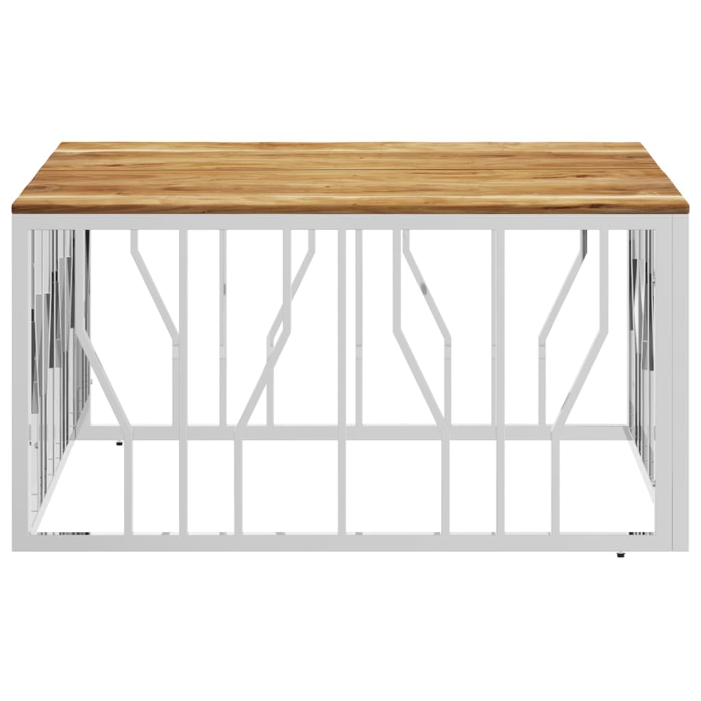 Couchtisch Silbern Edelstahl und Massivholz Akazie