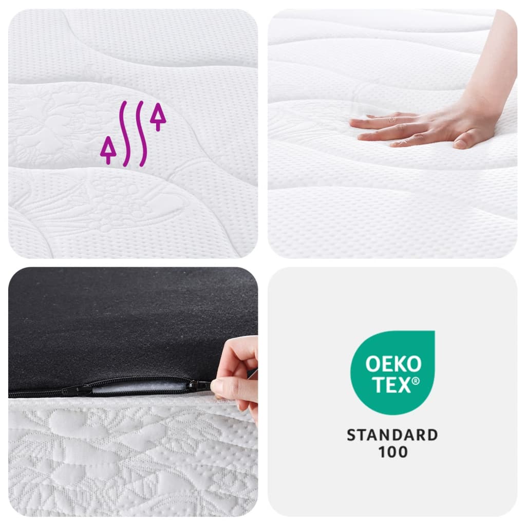 Diese Bonnell-Federkern-Matratze bietet dir ein angenehmes Gefühl und ein komfortables Schlaferlebnis. Haltbarkeit und Langlebigkeit: Der Stoff zeichnet sich durch einen schlichten und sauberen Look aus und ist gleichzeitig atmungsaktiv, hautfreundlich und langlebig. Ausgezeichnete Unterstützung: Das Bonnell-Federsystem besteht aus miteinander verbundenen Stahlspiralen in Sanduhr-Form, die fest und stabil sind, um besten Halt und Langlebigkeit zu bieten. Erhöhter Komfort: Die Federkernmatratze besteht aus mehreren Schichten, darunter eine Schaumstoffschicht, eine Isolierschicht und eine Federschicht. Diese Kombination bietet ein weiches bis mittleres Liegegefühl und einen hohen Liegekomfort in allen Schlafpositionen. Darüber hinaus absorbiert die Matratze effektiv Geräusche und Vibrationen, die durch das Hin- und Herdrehen verursacht werden, und sorgt so für einen ruhigen und ungestörten Schlaf. Einfache Pflege: Die Federkernmatratze ist mit einem langen Reißverschluss ausgestattet, so dass sich der Bezug zum Reinigen leicht abnehmen lässt. Gut zu wissen:Der Bezug der Matratze ist bei bis zu 40 °C waschbar. Es ist zu beachten, dass er nicht häufig gewaschen werden sollte. Die Matratze ist komprimiert und aufgerollt in einem Karton verpackt, so dass du sie leicht bewegen und in deinem Zimmer aufstellen kannst.