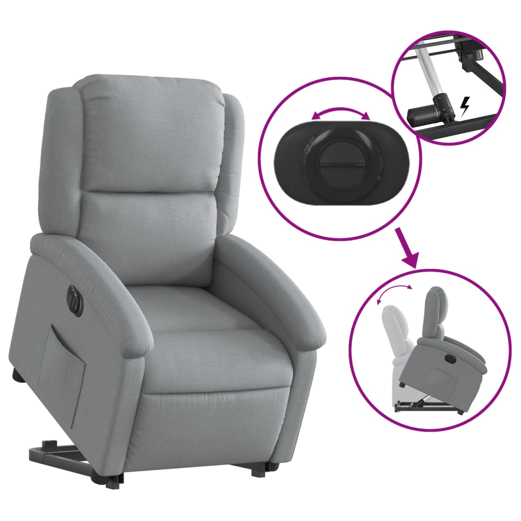 Relaxsessel mit Aufstehhilfe Elektrisch Hellgrau Stoff