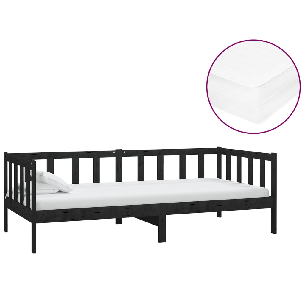 Tagesbett mit Matratze 90x200 cm Schwarz Kiefer Massivholz