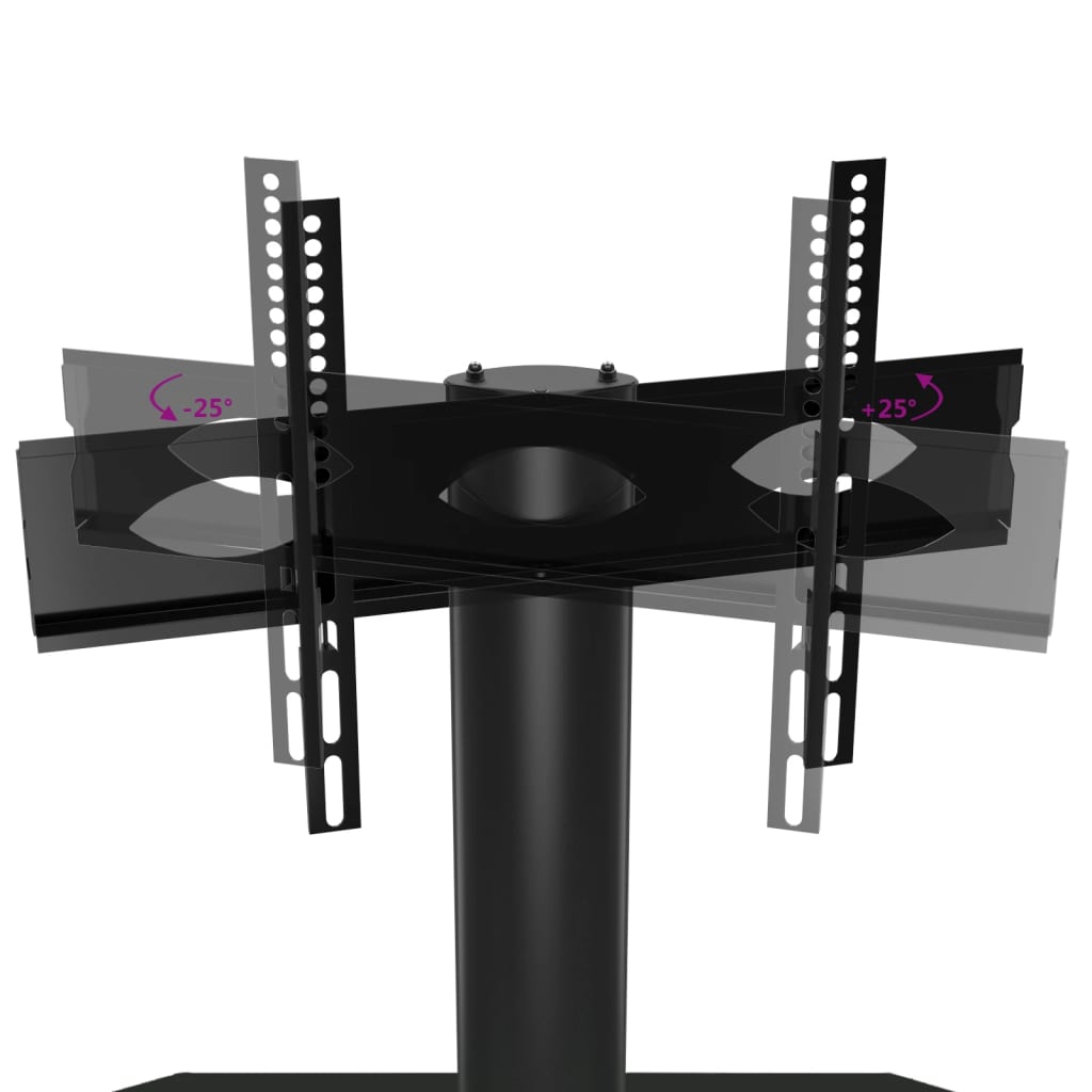 Dieses TV-Eckregal besteht aus einer TV-Halterung und einem Regal mit 3 Ablagen. Es bietet eine praktische Lösung zum Anbringen deines Fernsehers und schafft auch zusätzlichen Stauraum in deinem Zimmer. Schwenkfunktion: Dieser TV-Ständer kann um 25° nach links und rechts geschwenkt werden, um einen besseren Betrachtungswinkel zu genießen.Viel Stauraum: Der TV-Schrank ist mit Ablagen versehen und bietet dadurch reichlich Platz für DVDs, Multimedia-Geräte und andere Dekoartikel.Platzsparend: Durch sein kompaktes Design nimmt dieser TV-Ständer wenig Platz ein und findet leicht Platz in jeder Ecke kleiner Wohnzimmer, Schlafzimmer und Büros. Darüber hinaus verfügt er über ein Kabelmanagementsystem, um Platz zu sparen und Kabelsalat hinter dem TV-Ständer zu vermeiden.VESA-Kompatibilität: Die TV-Halterung ist mit VESA-Größen von 100 x 100 mm bis 600 x 400 mm kompatibel,wie 600x400/400x400/400x300/400x200/200x400/300x300/300x200/200x200/200x100/100x200/100x100 mm. Gut zu wissen:Stelle sicher, dass dein Fernseher über vier Gewindelöcher auf der Rückseite verfügt. Wir empfehlen, vor dem Erwerb die VESA-Lochabstände an deinem Fernseher zu messen, um die Kompatibilität sicherzustellen.Stelle sicher, dass die Breite deines Fernsehers auf den TV-Ständer passt und dass die Höhe von der TV-Halterung bis zur oberen Glasplatte auch für deinen Fernseher geeignet ist.Wir bieten verschiedene Schrauben und Abstandshalter für deinen Fernseher an, diese könnten jedoch nicht mit allen Marken kompatibel sein. Die Verwendung der Originalschrauben, die mit deinem Fernseher geliefert wurden, oder der Erwerb von Spezialschrauben könnte erforderlich sein.Achtung:Um ein Umkippen zu vermeiden, sollte dieses Produkt mit der mitgelieferten Wandhalterung gesichert werden.