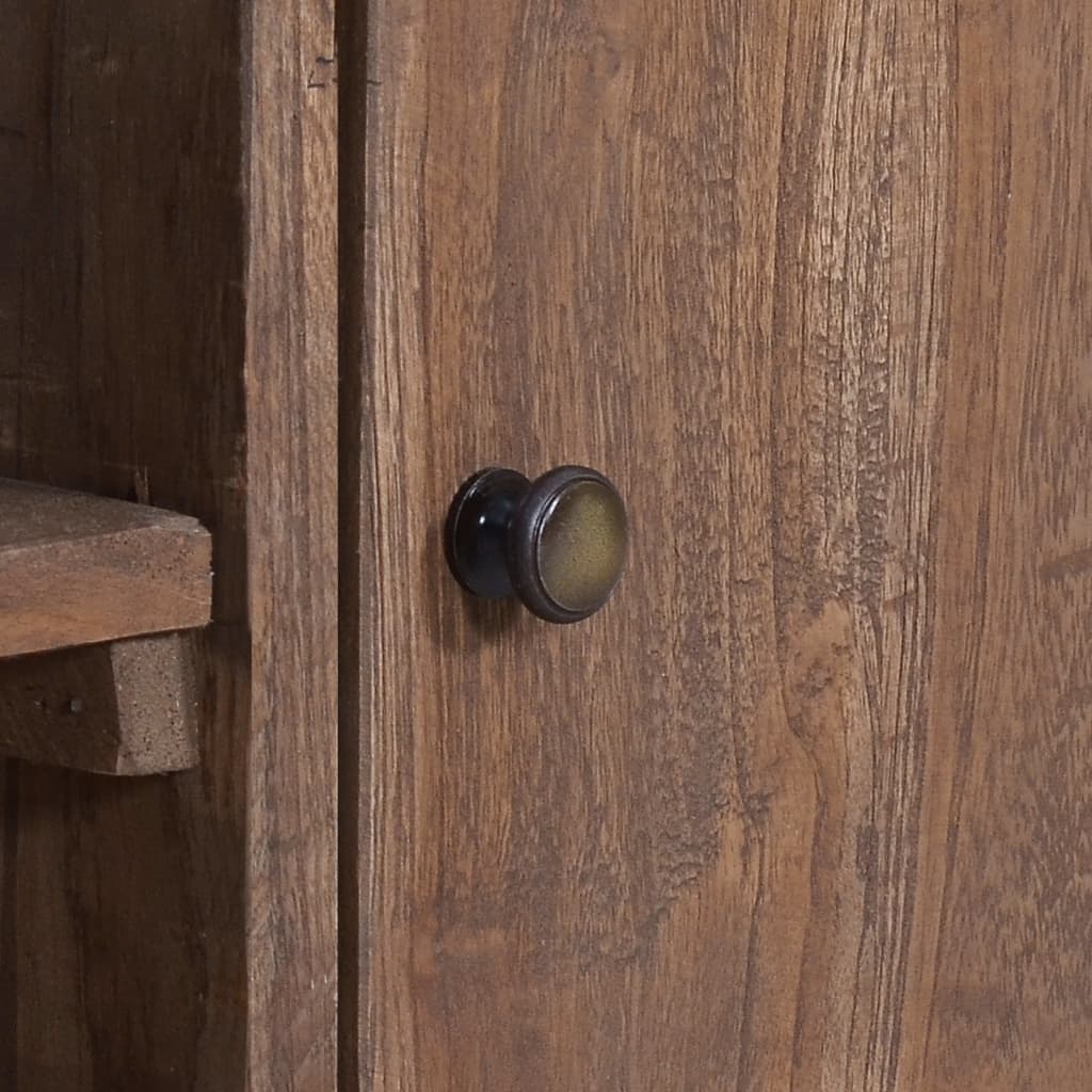 Der hölzerne TV-Schrank im Kolonialstil mit trendigem und zugleich praktischem Design wird zum Mittelpunkt Ihres Zimmers werden. Dieser rustikale TV-Schrank besteht aus massivem Teakholz und weist ein natürliches Finish auf. Er ist somit eine zeitlose Ergänzung für Ihr Zuhause. Massives Teakholz wird für seine außergewöhnliche Festigkeit, große Haltbarkeit und Robustheit geschätzt. Jeder Schritt des Prozesses wird mit größter Sorgfalt ausgeführt, sei es Polieren, Anstreichen oder Lackieren. Es verfügt über 1 Tür und 2 offene Fächer für Ihre Schnickschnack, Multimedia-Geräte, Spielekonsolen und Magazine. Wichtiger Hinweis: Die Farben variieren von Stück zu Stück und machen jeden dieser TV-Schränke zu einem Unikat. Die Lieferung erfolgt ebenfalls nach dem Zufallsprinzip.