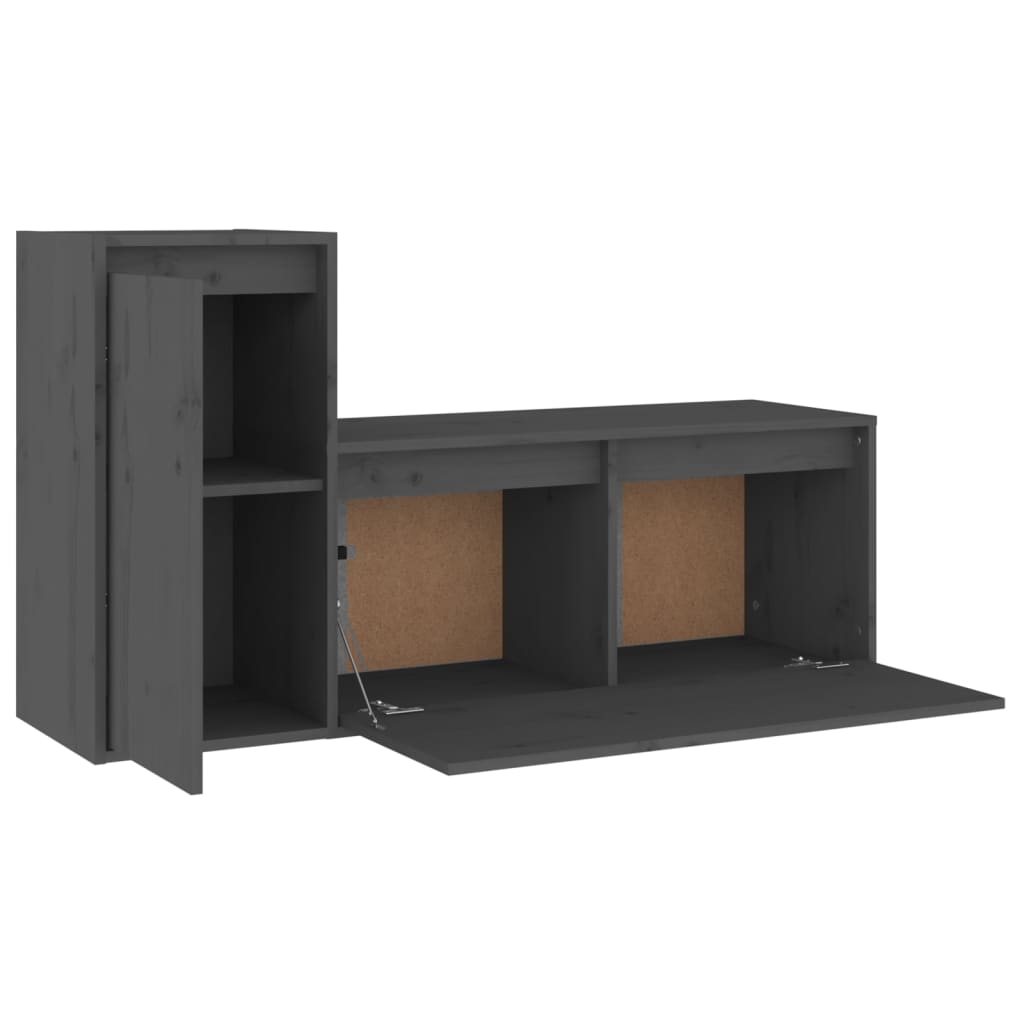 TV-Schränke 2 Stk. Grau Massivholz Kiefer
