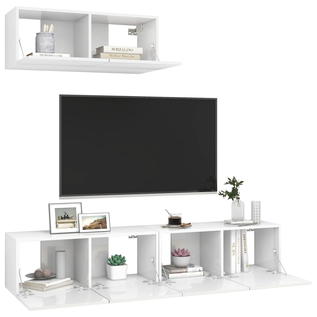 TV-Schränke 3 Stk. Hochglanz-Weiß Holzwerkstoff