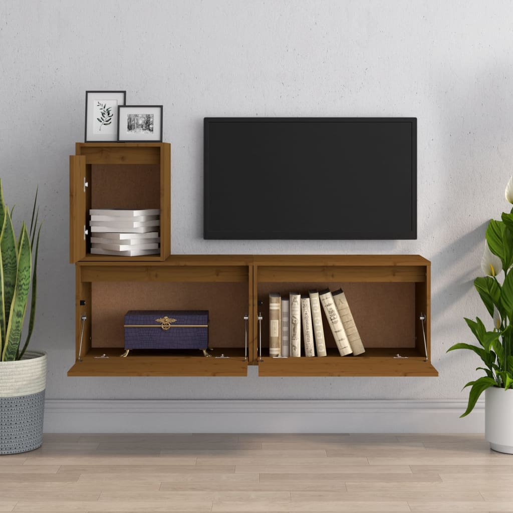 TV-Schränke 3 Stk. Honigbraun Massivholz Kiefer