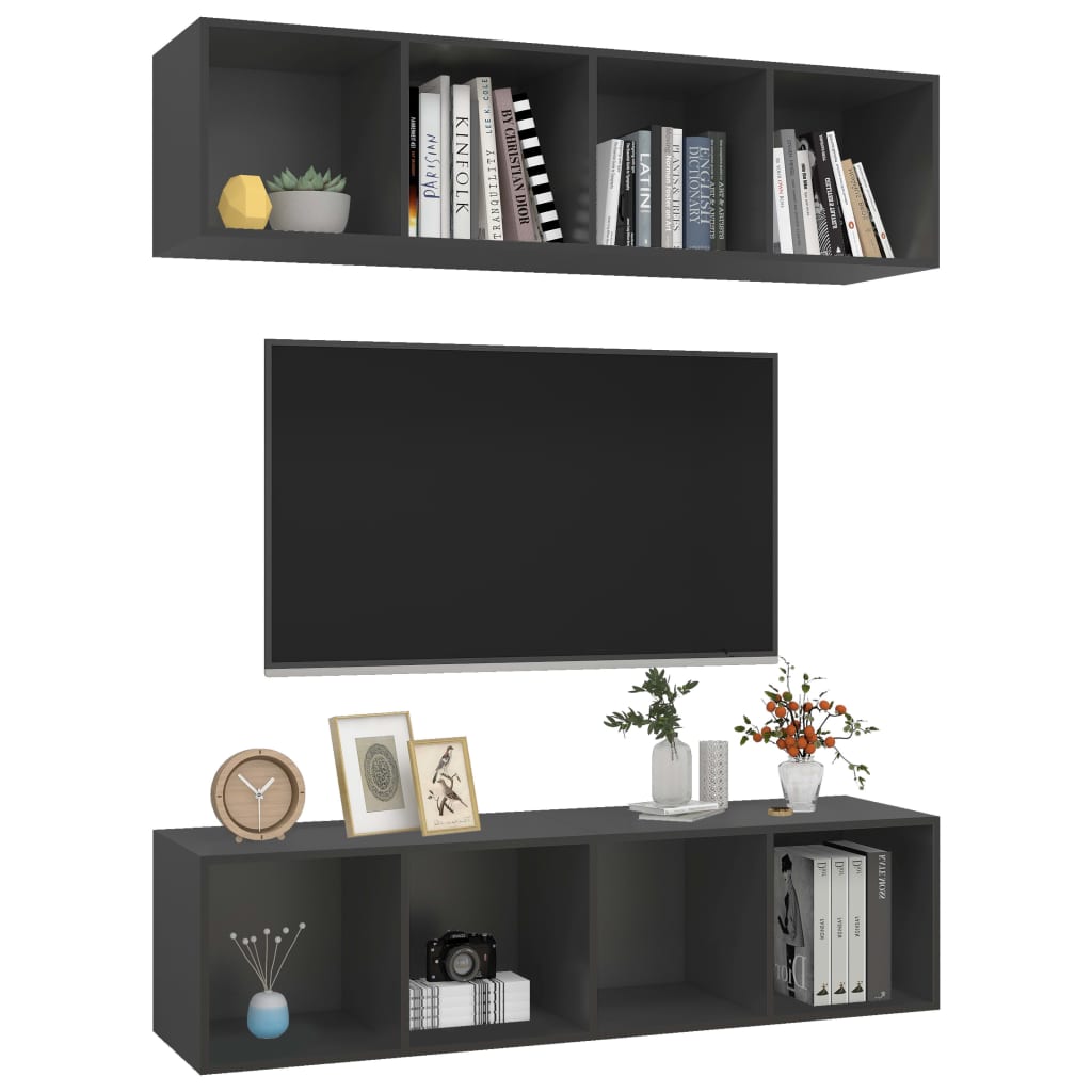 TV-Wandschränke 2 Stk. Grau Holzwerkstoff