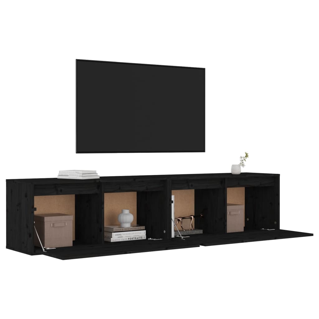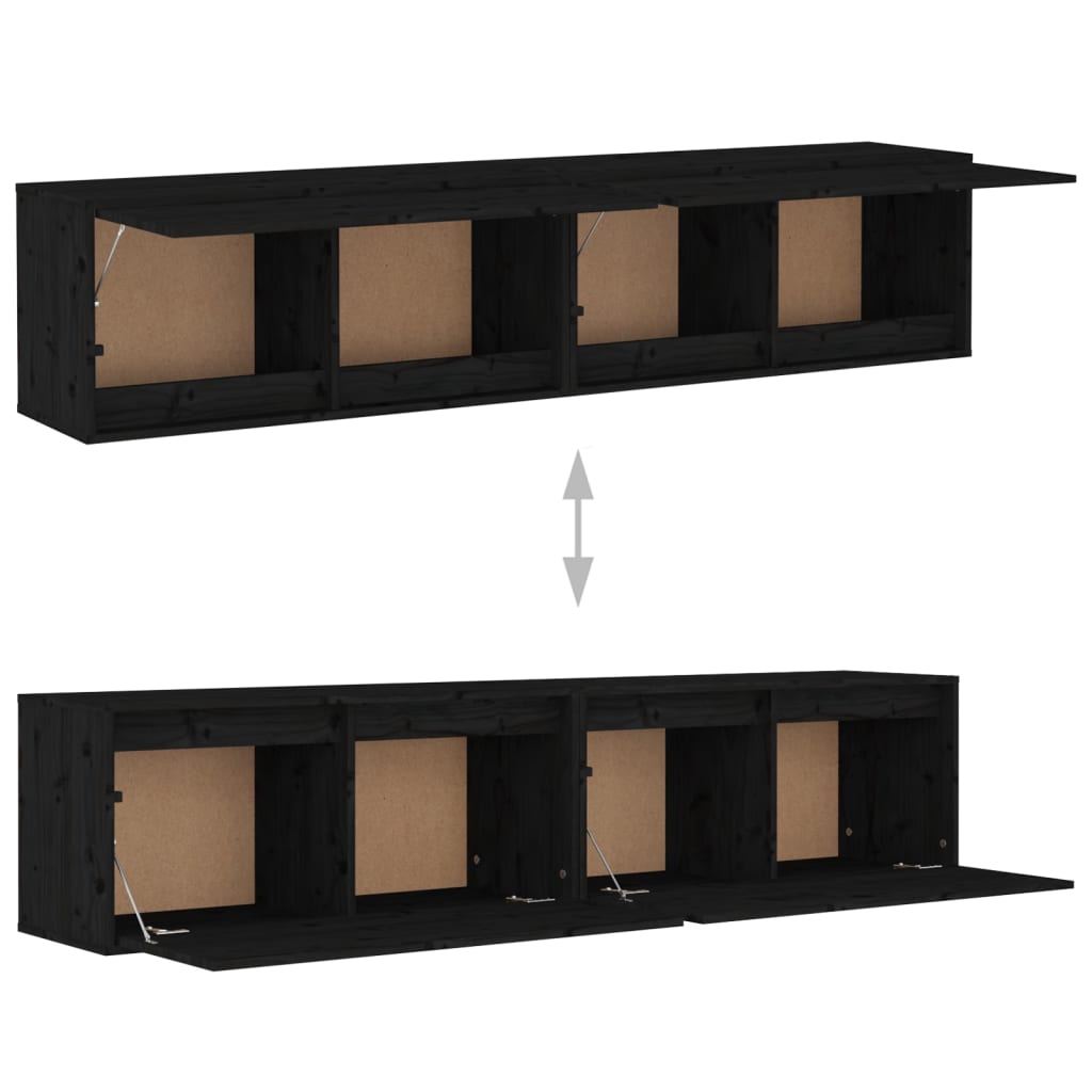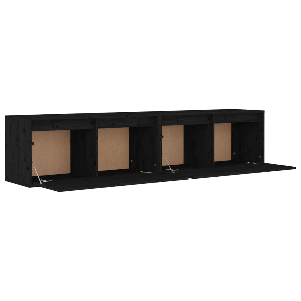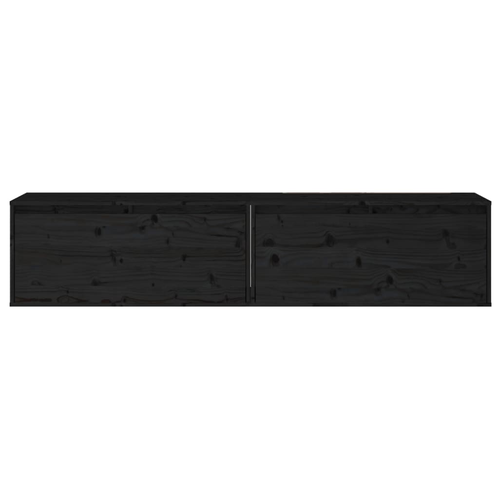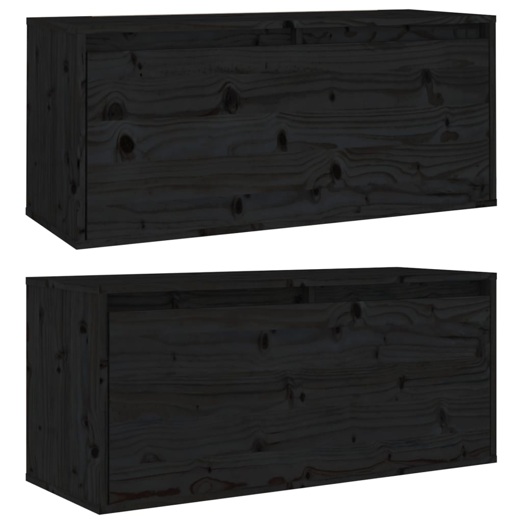 Wandschränke 2 Stk. Schwarz 80x30x35 cm Massivholz Kiefer